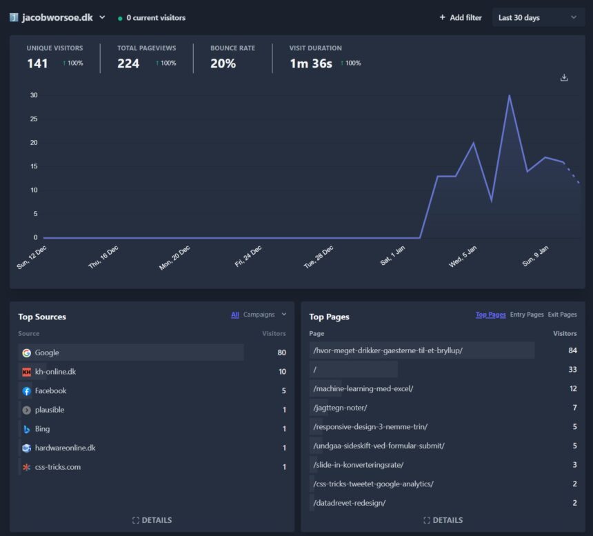 Plausible Analytics er en ny analytics platform, som kan lave (simpel) analytics uden brug af cookies.
