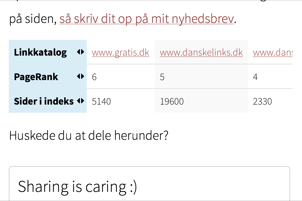TablePress har desuden nogle fede extensions (dvs. selvstændige plugins som udvider TablePress funktionaliteten når de installeres). De kunne egentlig ligeså godt have været indbyggede options, men jeg tror måske de er lavet som extensions, for at han kan få lidt penge/donationer for dem. Et eksempel er Responsive Tables som gør store tabeller mobil-venlige. Det har jeg brugt i tabellen med alle linkkatalogerne her. Hvis du ikke lige har din iPhone ved hånden, så bare gør dit browservindue mindre, så kan du se tabellen ændre sig og får en horisontal scroll funktion, så hele indholdet stadig kan ses på en lille skærm.