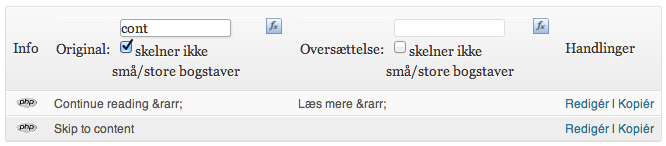 Hvis du arbejder med Wordpress sites på dansk, er du sikkert ofte stødt på små tekststykker rundt omkring som enten er dårligt oversat eller ikke er oversat. Dette er især tilfældet med plugins, men themes vil også ofte have nogle småting der skal oversættes. Med dette plugin er det super let at finde de stumper tekst der skal oversættes/omskrives via en super hurtig search-as-you-type funktion. Altsammen styret fra Wordpress administrationen uden at rode med filer.