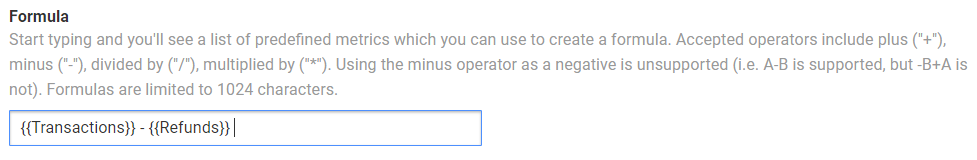 Derefter kan du lave endnu en Calculated Metric, hvor du trækker konverteringsraten for returneringer fra den normale konverteringsrate og dermed får du konverteringsraten for de ordre der ikke bliver returneret, dvs. de ordre du faktisk ender med at tjene penge på.