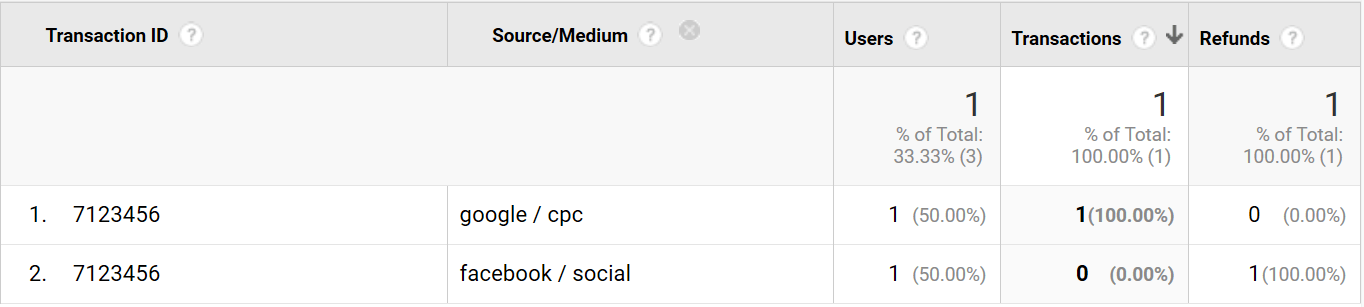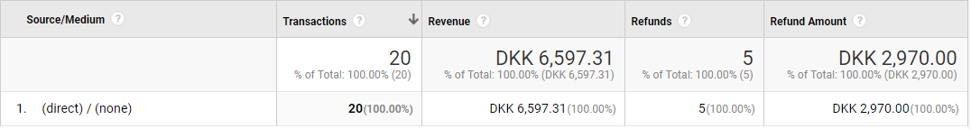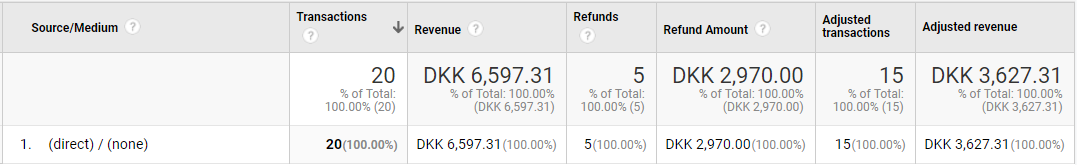 En anden lidt mærkelig ting med Refunds er at de bliver attribueret til den sidste trafikkilde brugeren har haft - ikke den trafikkilde som brugeren havde da ordren blev lagt.