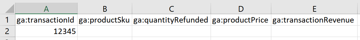 Det er kun ga:transactionId der er obligatorisk, så de andre felter kan du bare lade være tomme. Hver ordre der skal returneres placeres på sin egen række i filen.