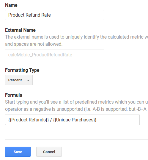 Calculated Metrics i Google Analytics giver mulighed for at udregne nye metrics på baggrund af andre eksisterende metrics.
